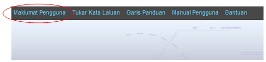 2. Bagi pengguna yang log masuk kali pertama, diwajibkan mengemaskini Maklumat Pengguna terlebih dahulu sebelum membuat apa-apa permohonan. Klik pada hiperpautan menu Maklumat Pengguna di atas, bahagian kanan