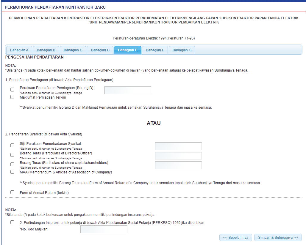 Skrin 12: Antaramuka Pengesahan Pendaftaran - Tab BAHAGIAN E
