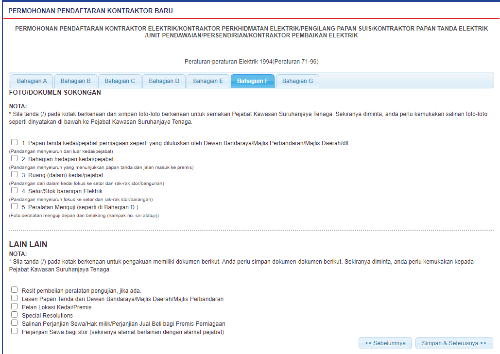 1. Tandakan semua "checkbox" pada yang berkenaan.