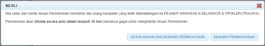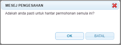 " untuk menghantar permohonan. Mesej berikut akan dipaparkan: