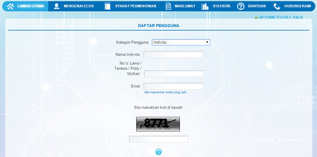 1. Bagi pengguna kali pertama, pengguna perlu klik pada butang Daftar Pengguna (