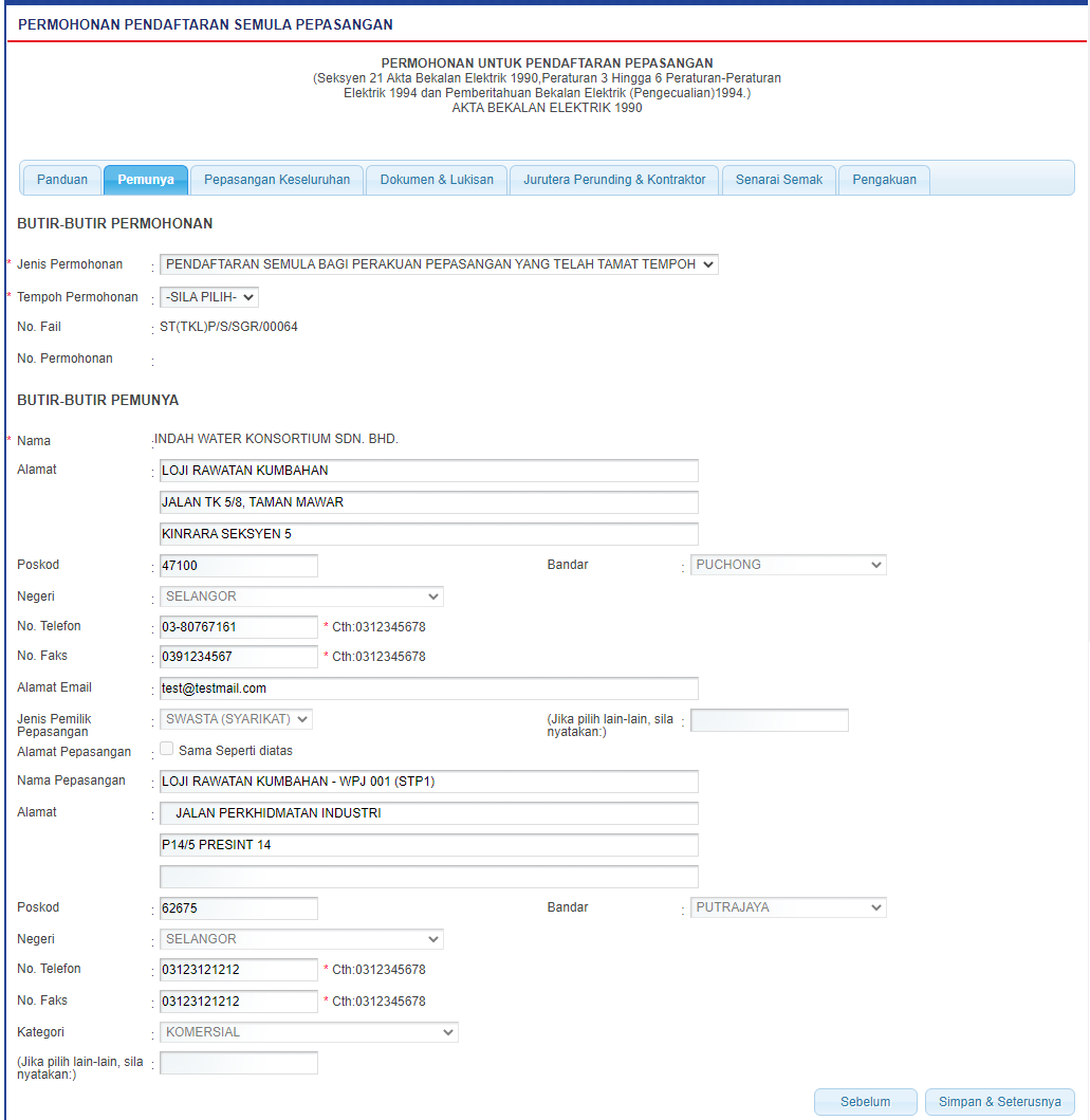 Skrin 11: Antaramuka Permohonan Pendaftaran Pepasangan Baru - Tab Pemunya