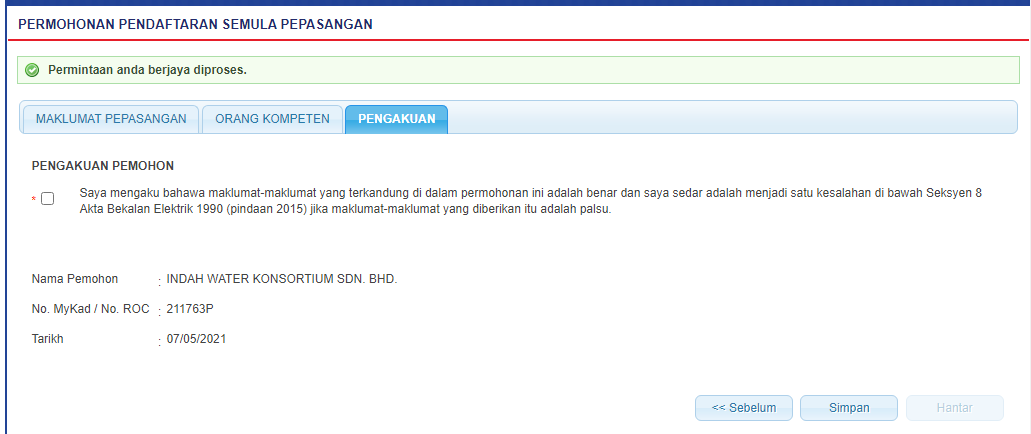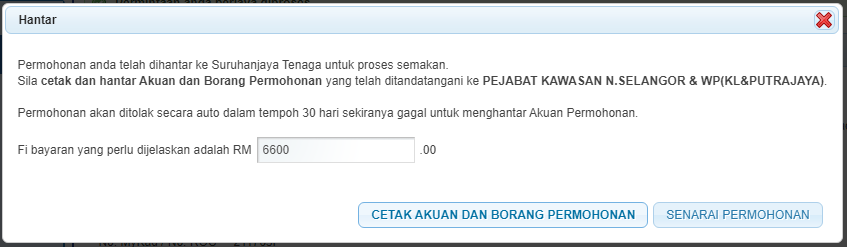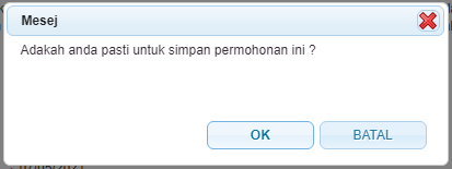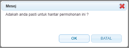 " untuk menghantar permohonan. Mesej berikut akan dipaparkan: